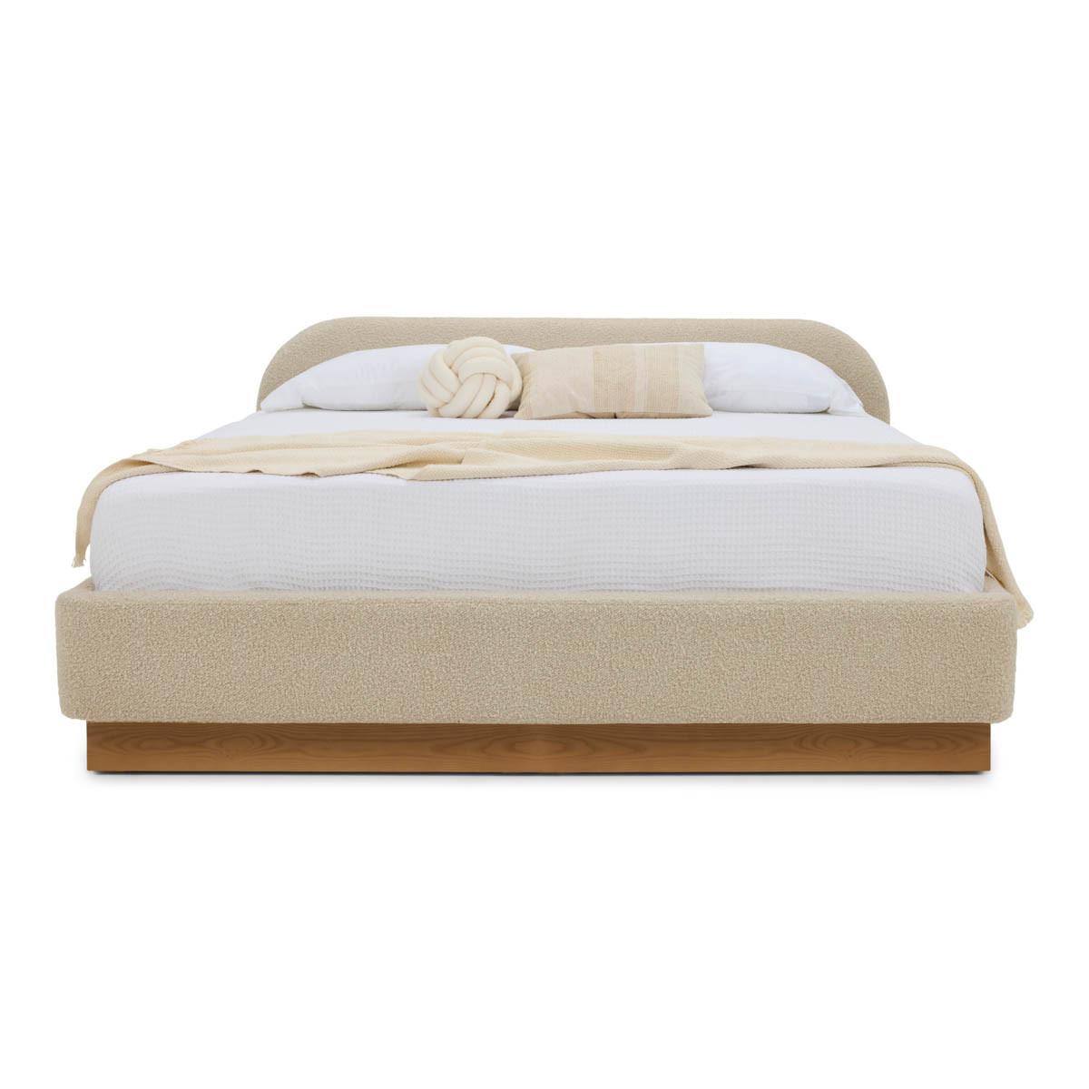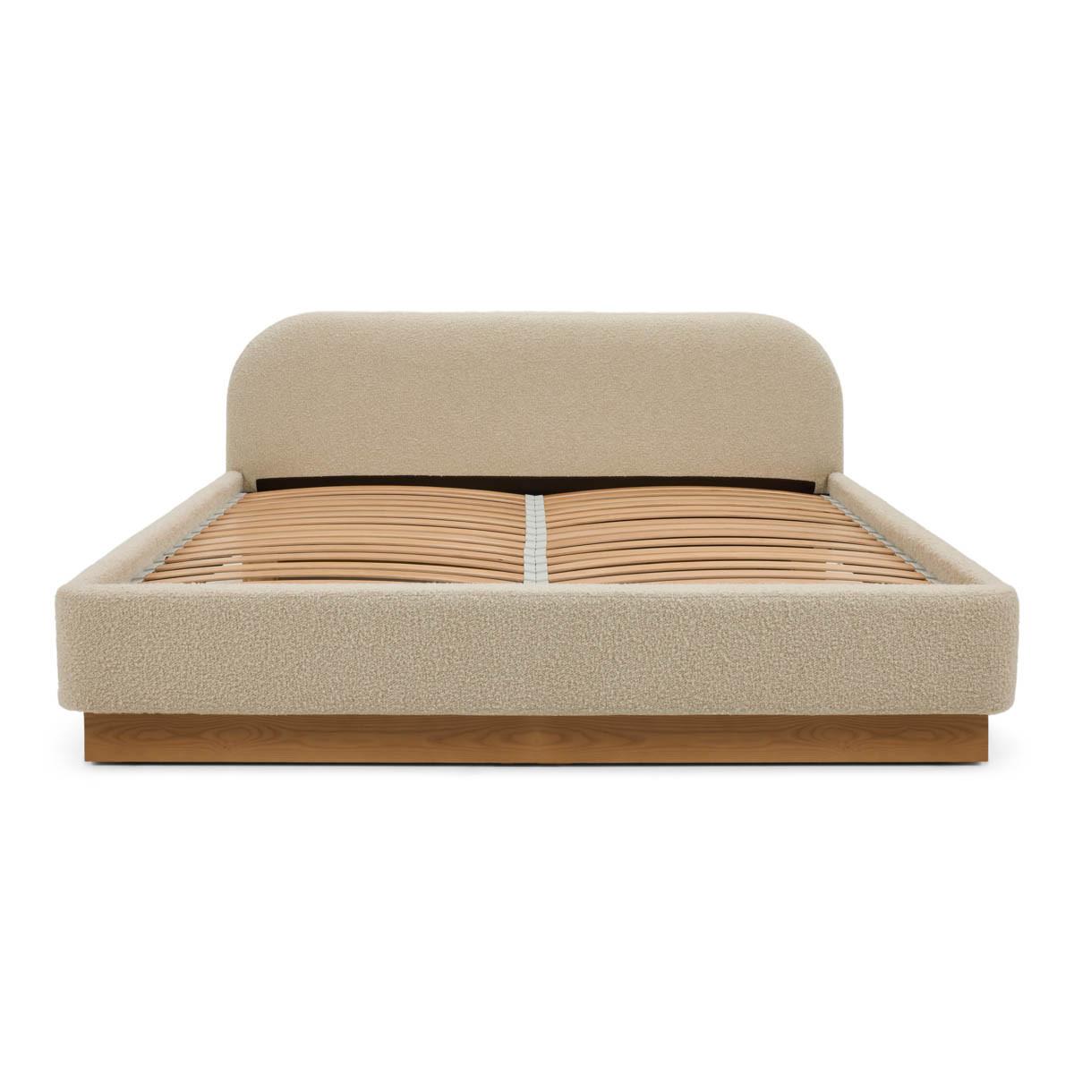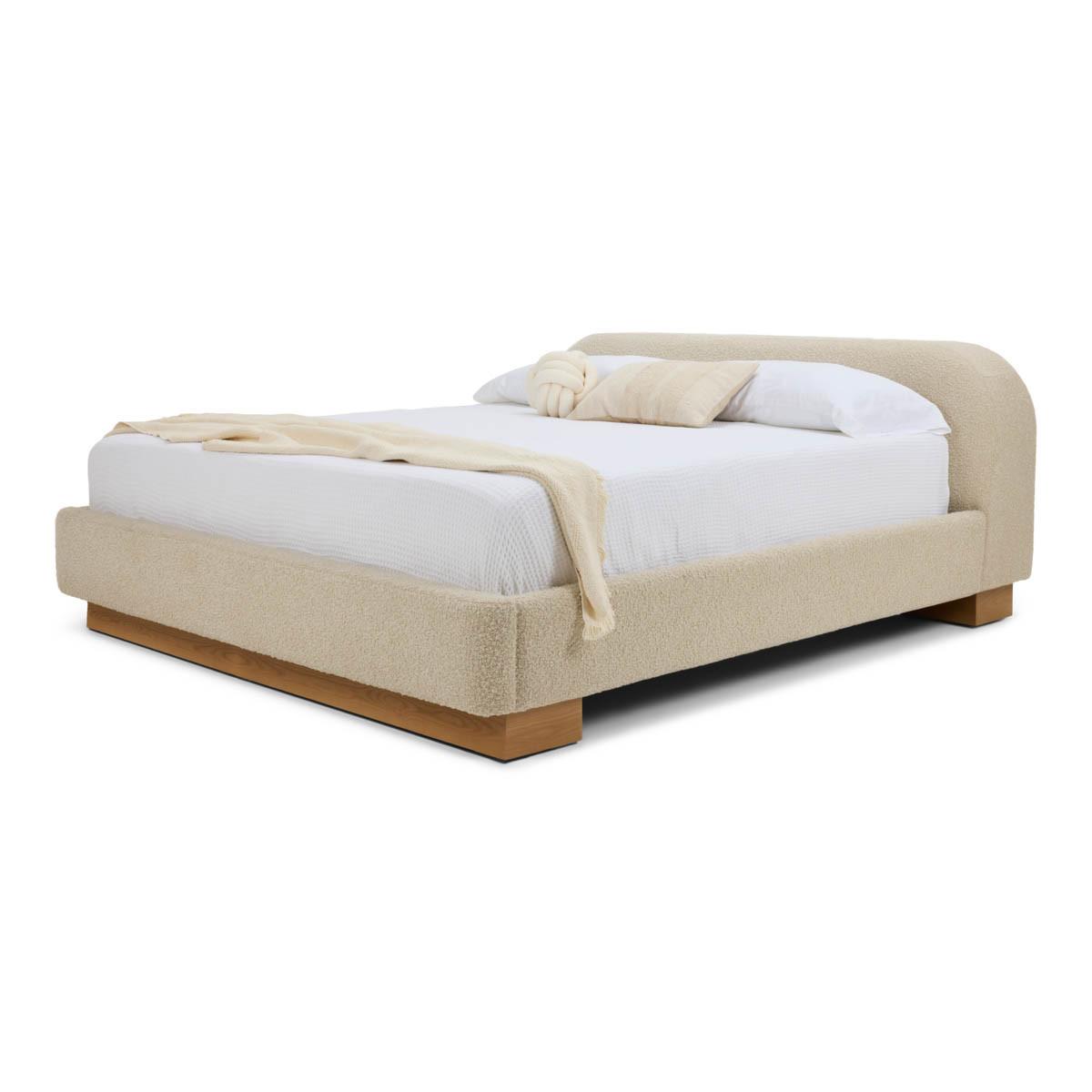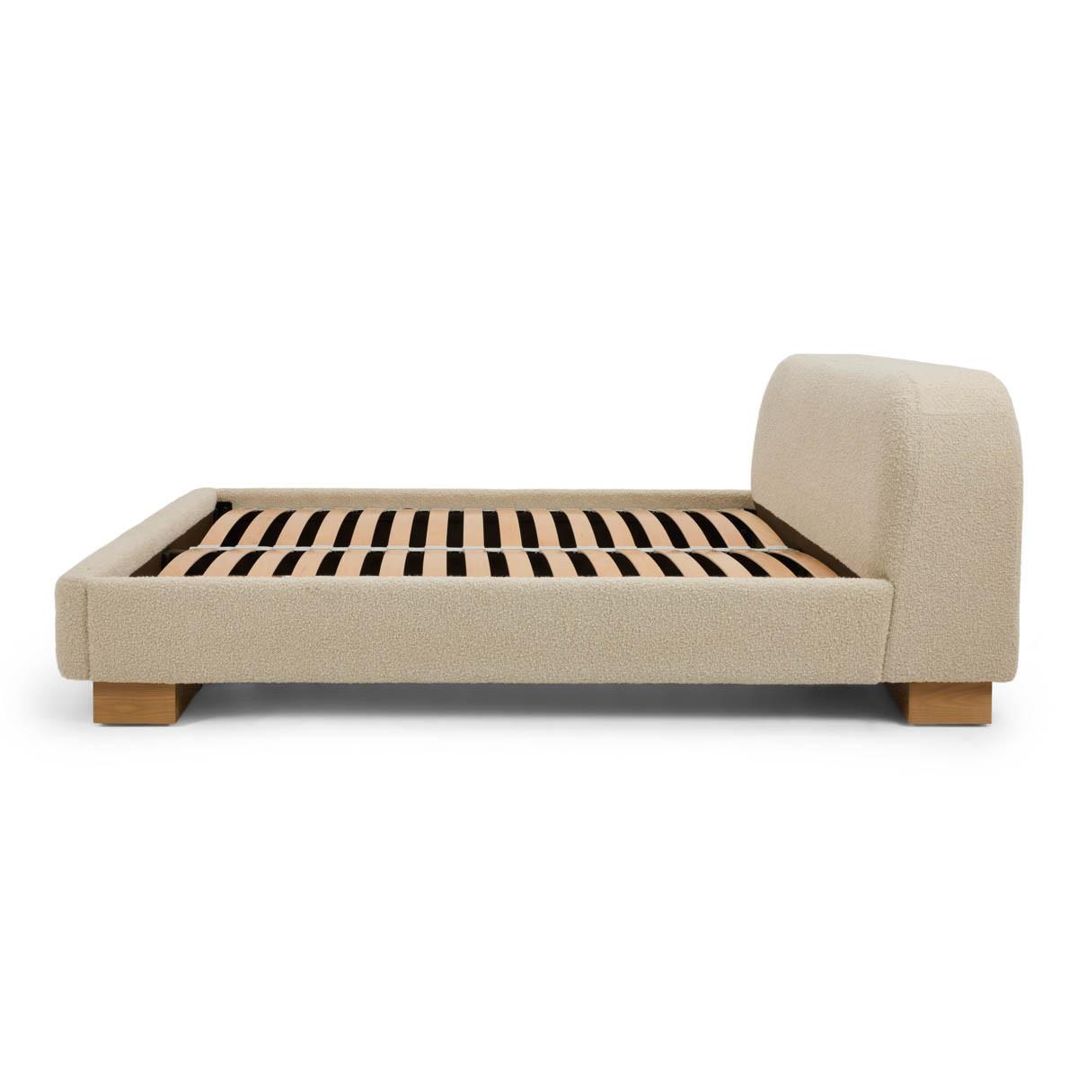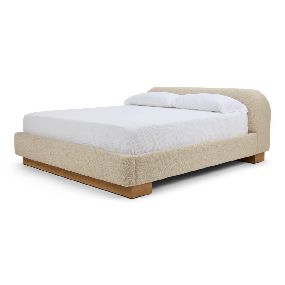 Sleek, sophisticated, and effortlessly luxurious, our Castiel bed frame features a soft, sculpted headboard with contrast stitching plus wood accents for a minimalist silhouette that will make a statement in any bedroom.