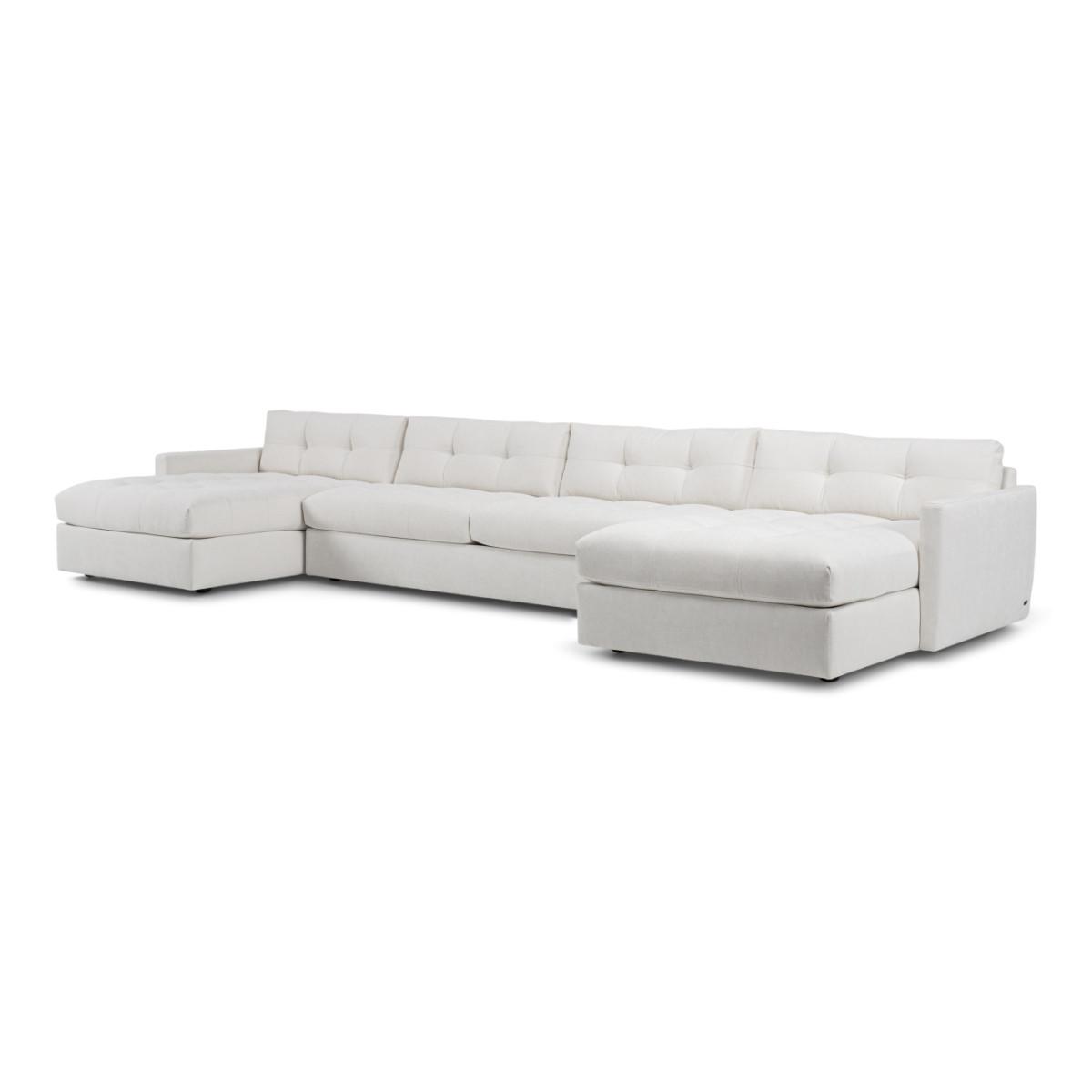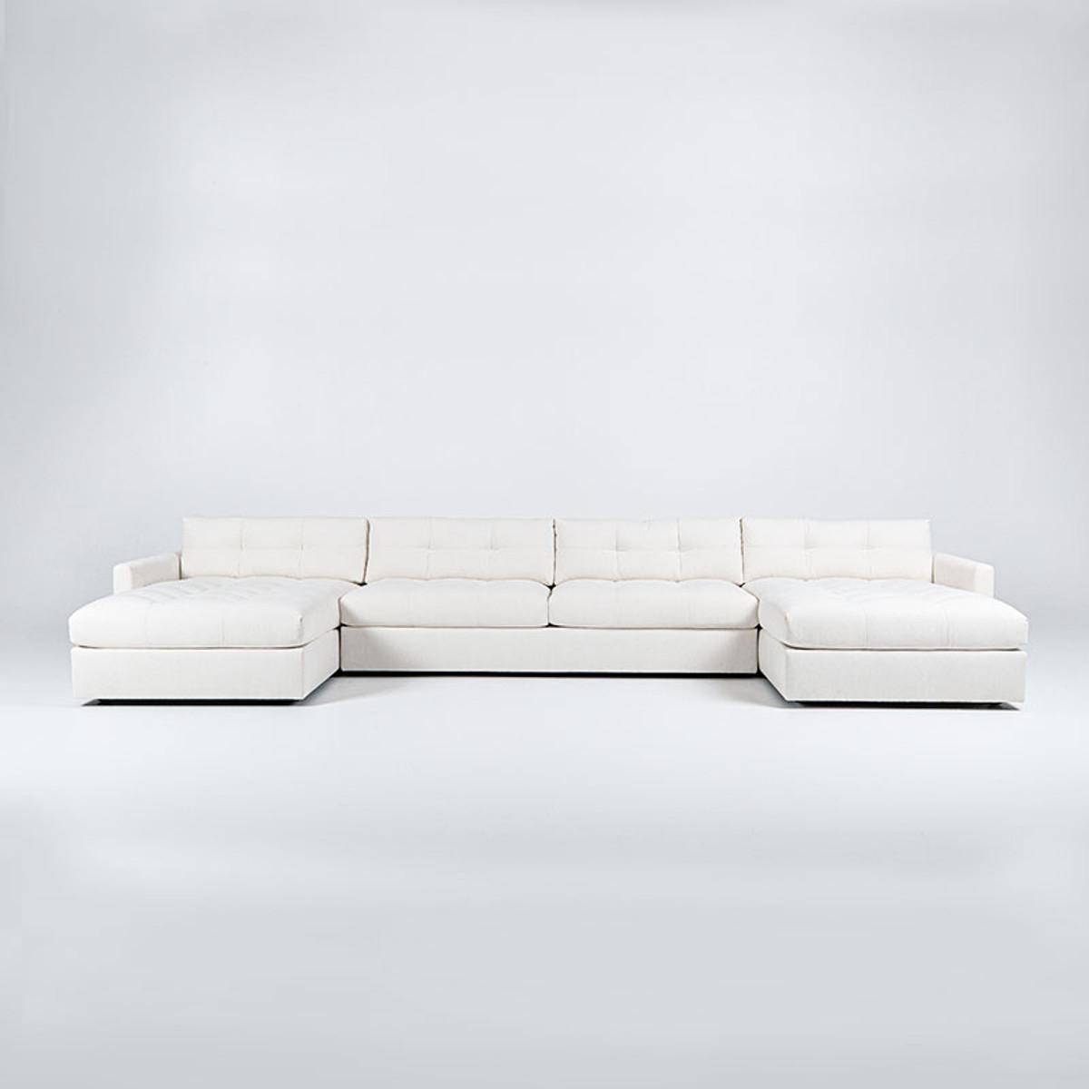 From every angle, this sectional has both style and poise. Carmet s sleek track arms are about the only things standard on this sectional. Choose tufted or plain back seat cushions to change the look and feel of this deep-seated sectional. Choose from our assortment of in-stock upholstery materials to create the u-or-L shaped leather or fabric sectional couch of your dreams. Simply add on a chaise lounge section for a classic look. Building your own Carmet sectional sofa is easy with its many matching pieces to create the perfect corners for lounging, laying, or lazing about.