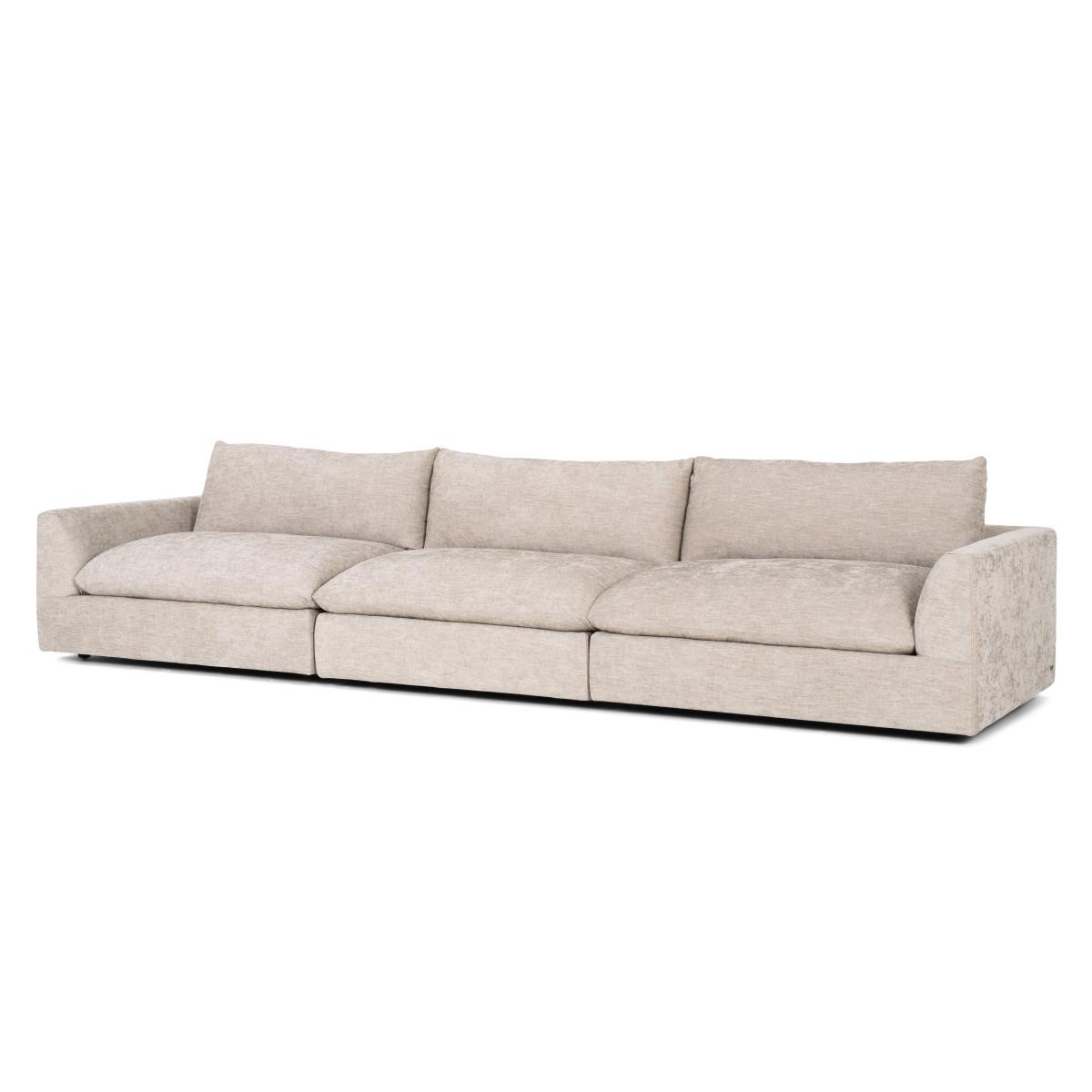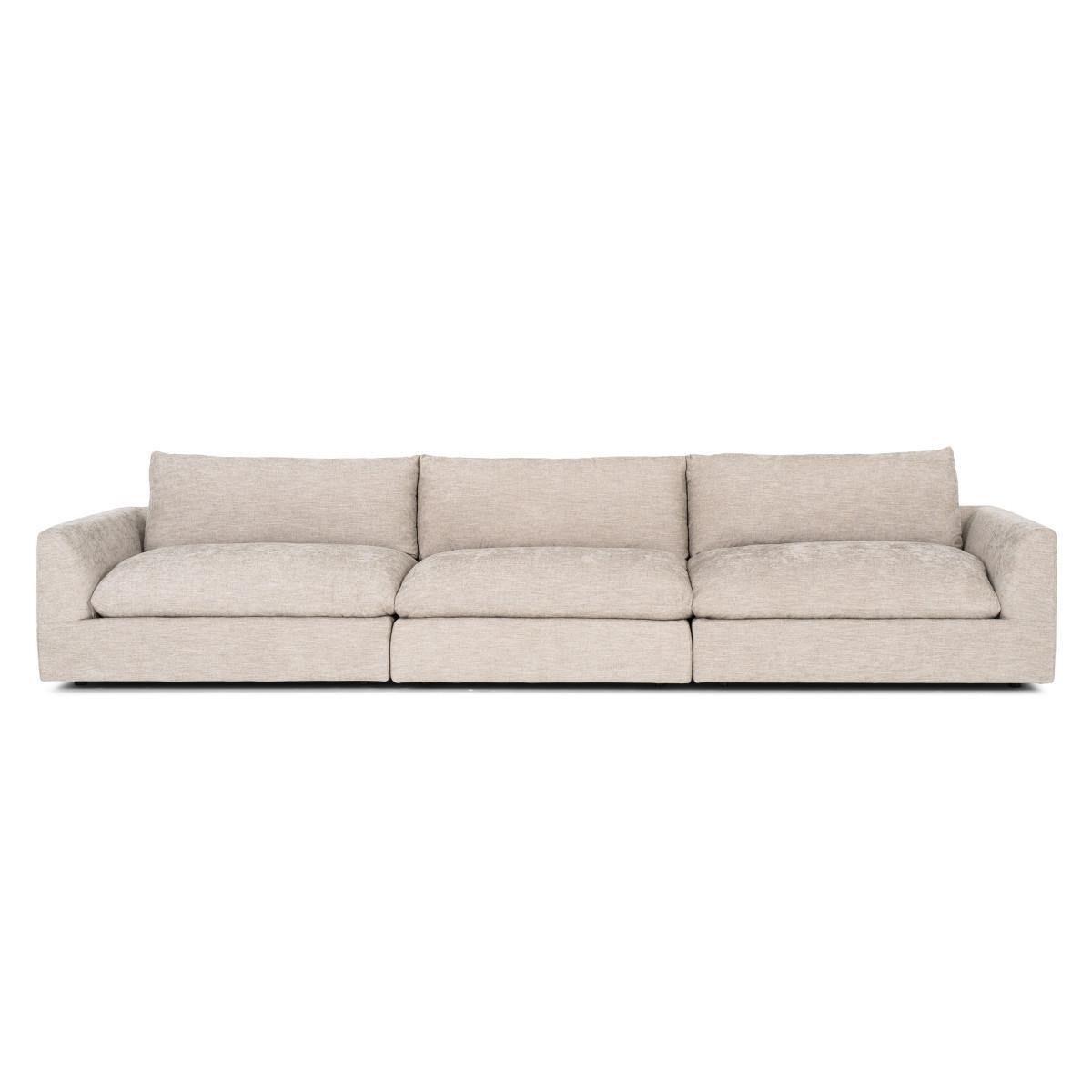 Thanks to its knife-edged, down and memory foam seat and back cushions, Espen is as relaxed as it is poised. The sofa is modular and can be specified in a variety of configurations and offered in a choice of either studio or grand seat depths. Espen features an advanced unidirectional suspension system using premium high-density and high-resiliency foam seat cushions encased in down. It is available in a wide range of fabrics and leathers. Lifetime warranty on the frame and suspension.