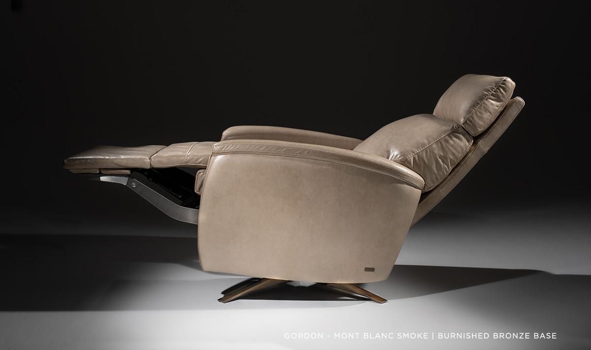 The luxury of grandstand seating with the look of modern equestrian saddles. The Gordon Comfort Recliner™ mixes feminine and masculine design; the result is first-class comfort.
