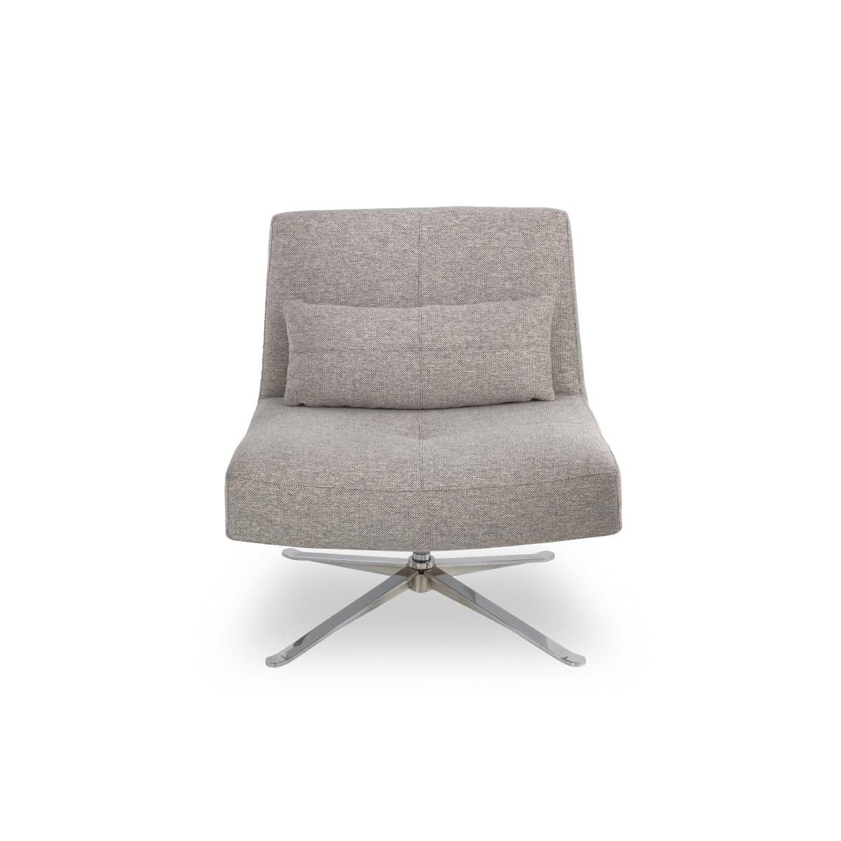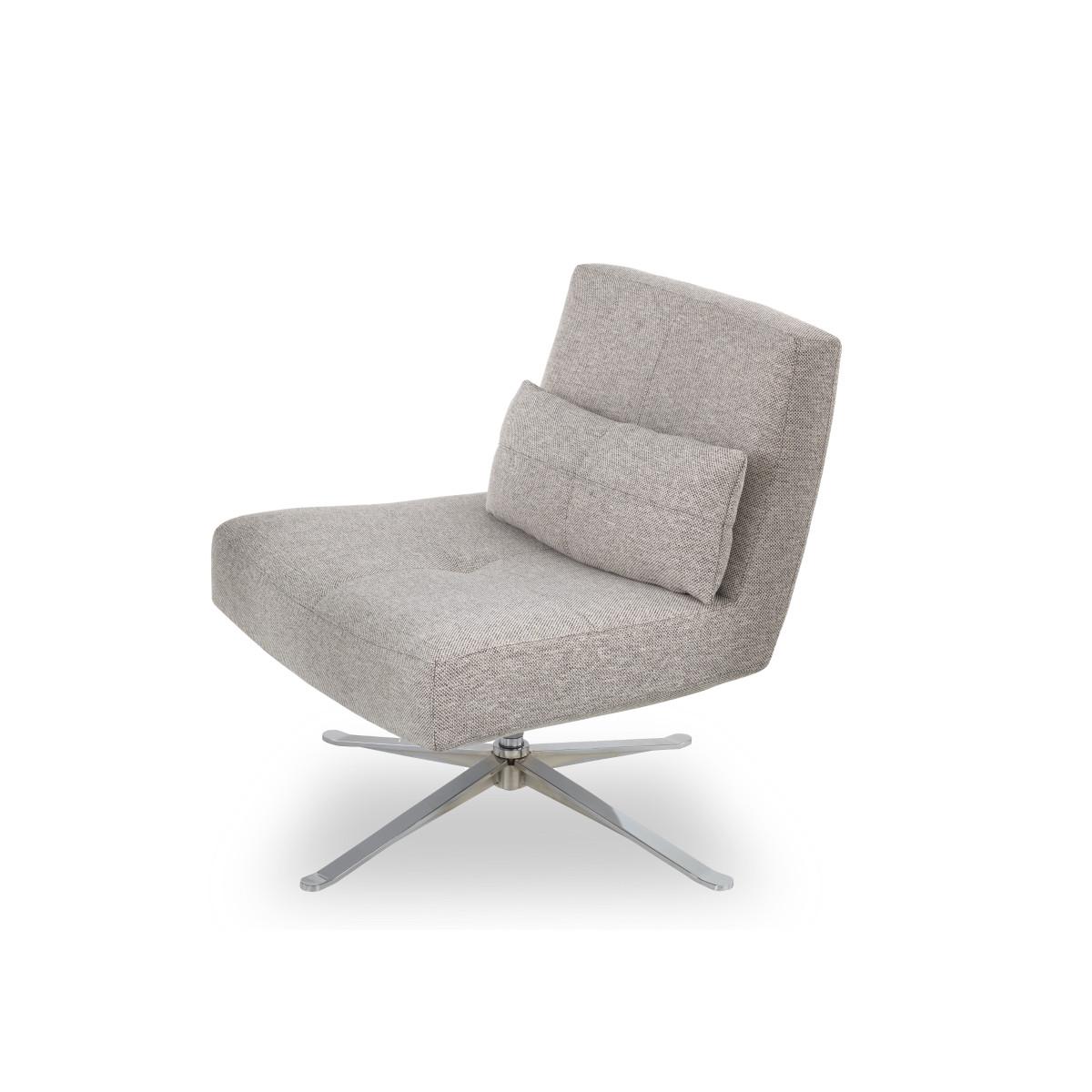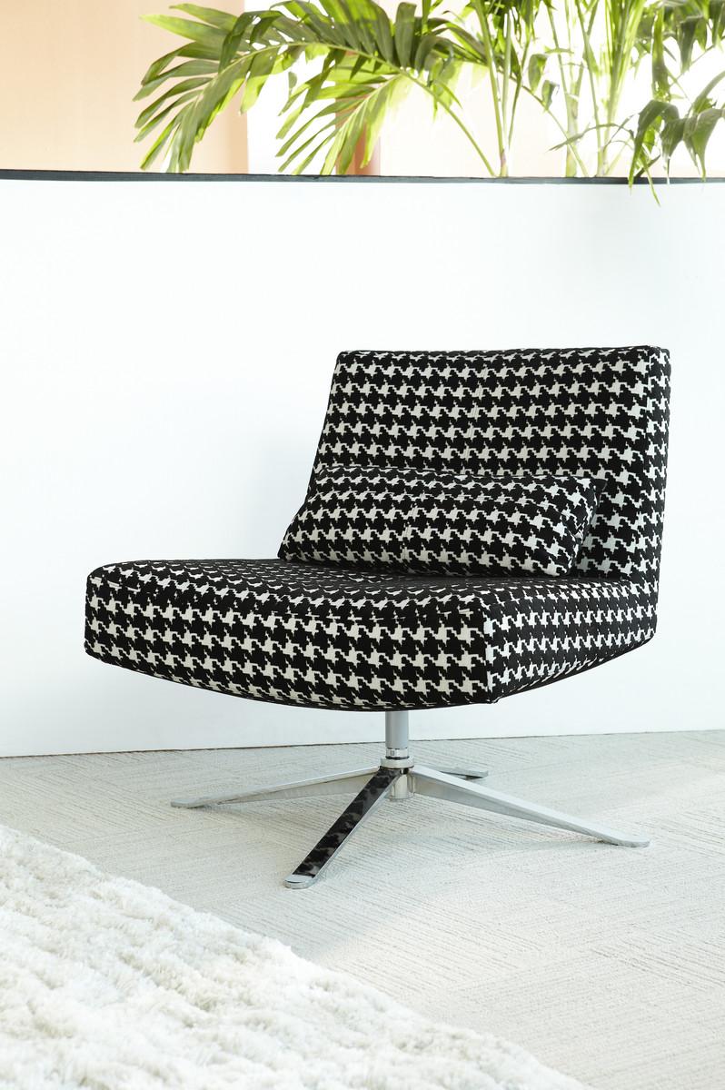 The armless swivel chair offers clean modern lines for easy-going charm and an ample seat for comfort. A stunning metal base completes the modern masterpiece.
