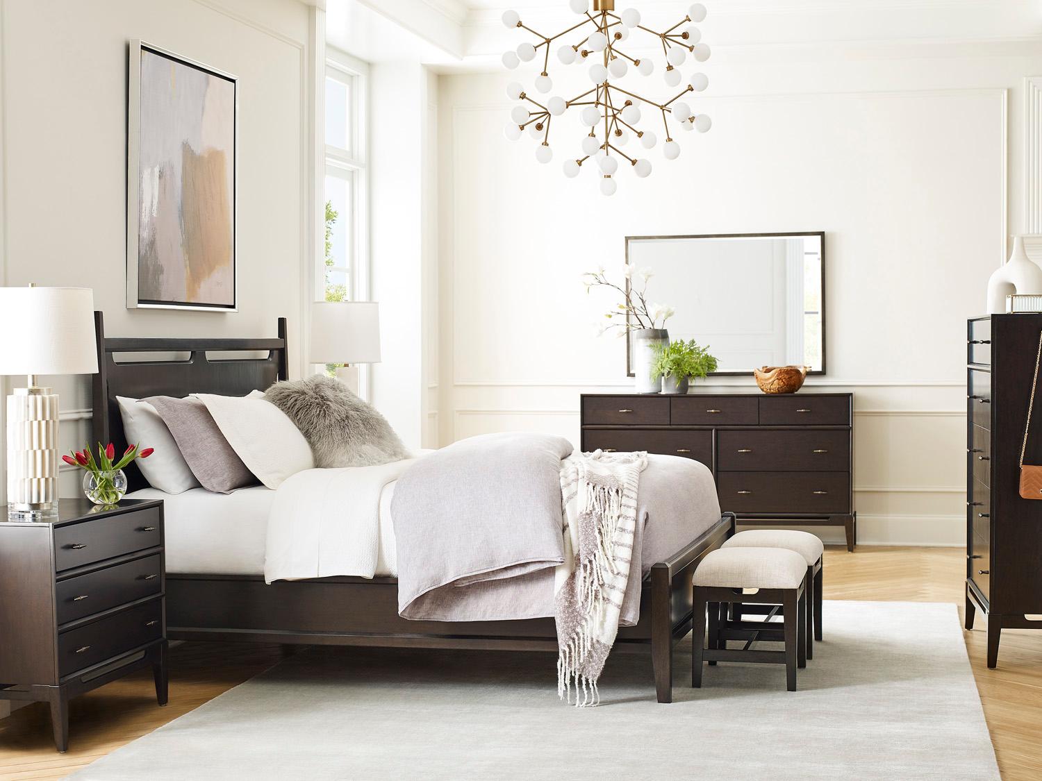 Sutton’s subtle curves and straight lines are both beautiful and functional. The collection has a deep French Roast finish paired with burnished bronze finished hardware in a transitional design that begs to be admired.