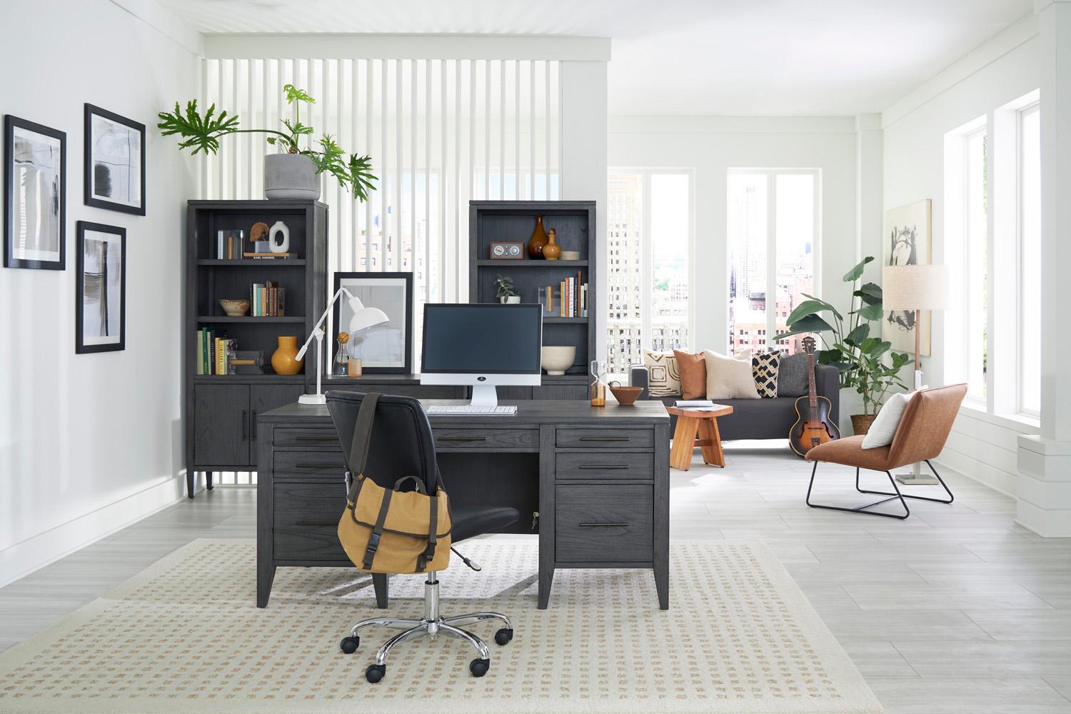 Preston offers a clean, transitional style in a gorgeous Urbane Grey finish with generously sized contemporary bar pull hardware.