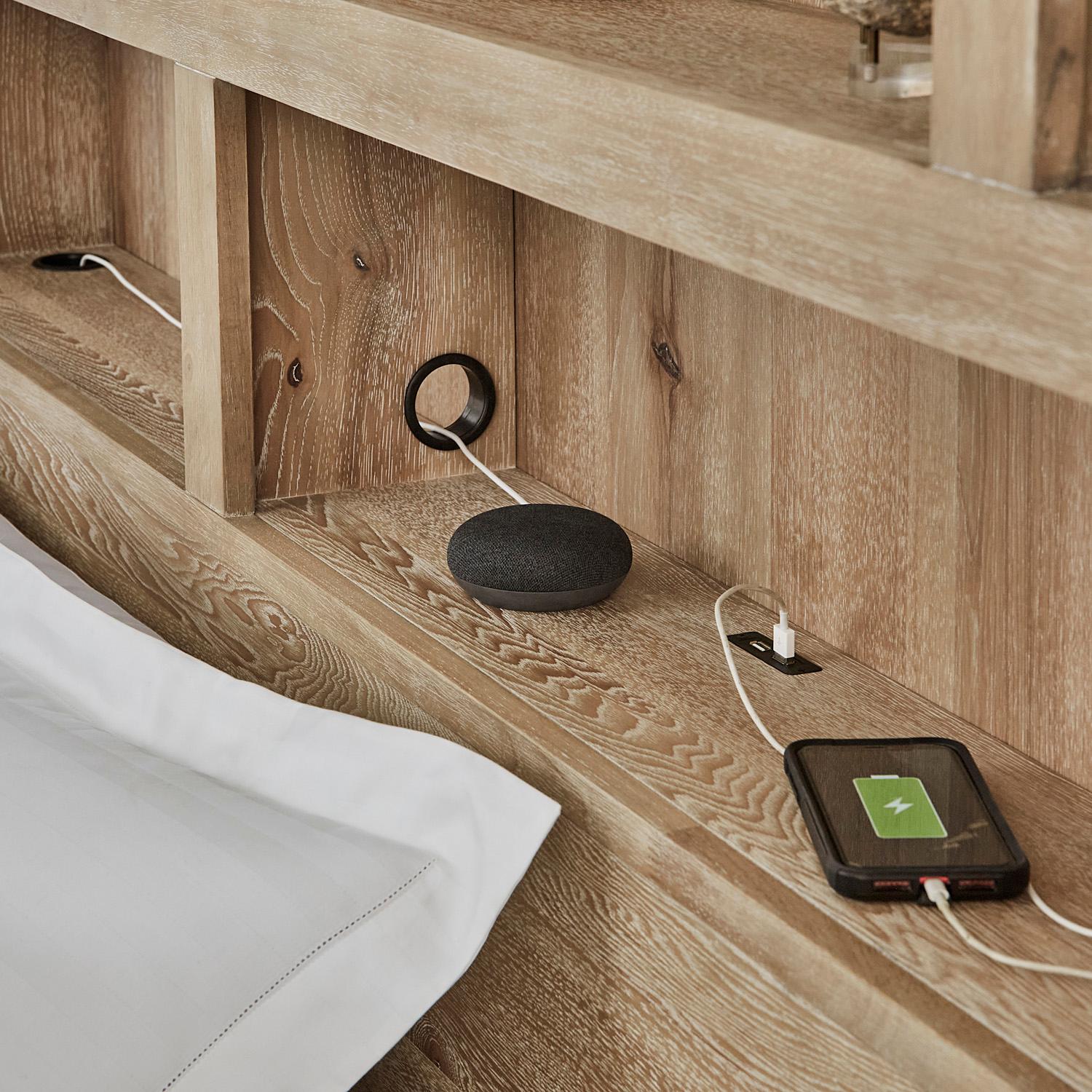 USB Headboard Charging Ports : USB ports are conveniently located on both sides of the headboard for easy reach. Keep your phone or tablet charged and ready for the busy day ahead.